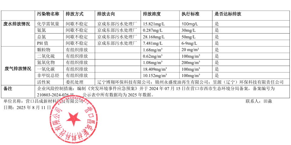營(yíng)口昌成新材料科技有限公司清潔生產(chǎn)信息公示